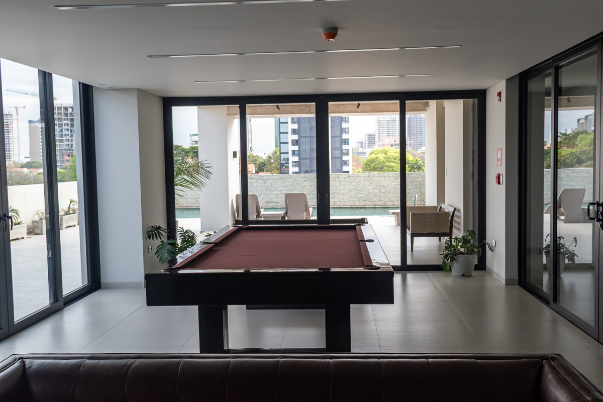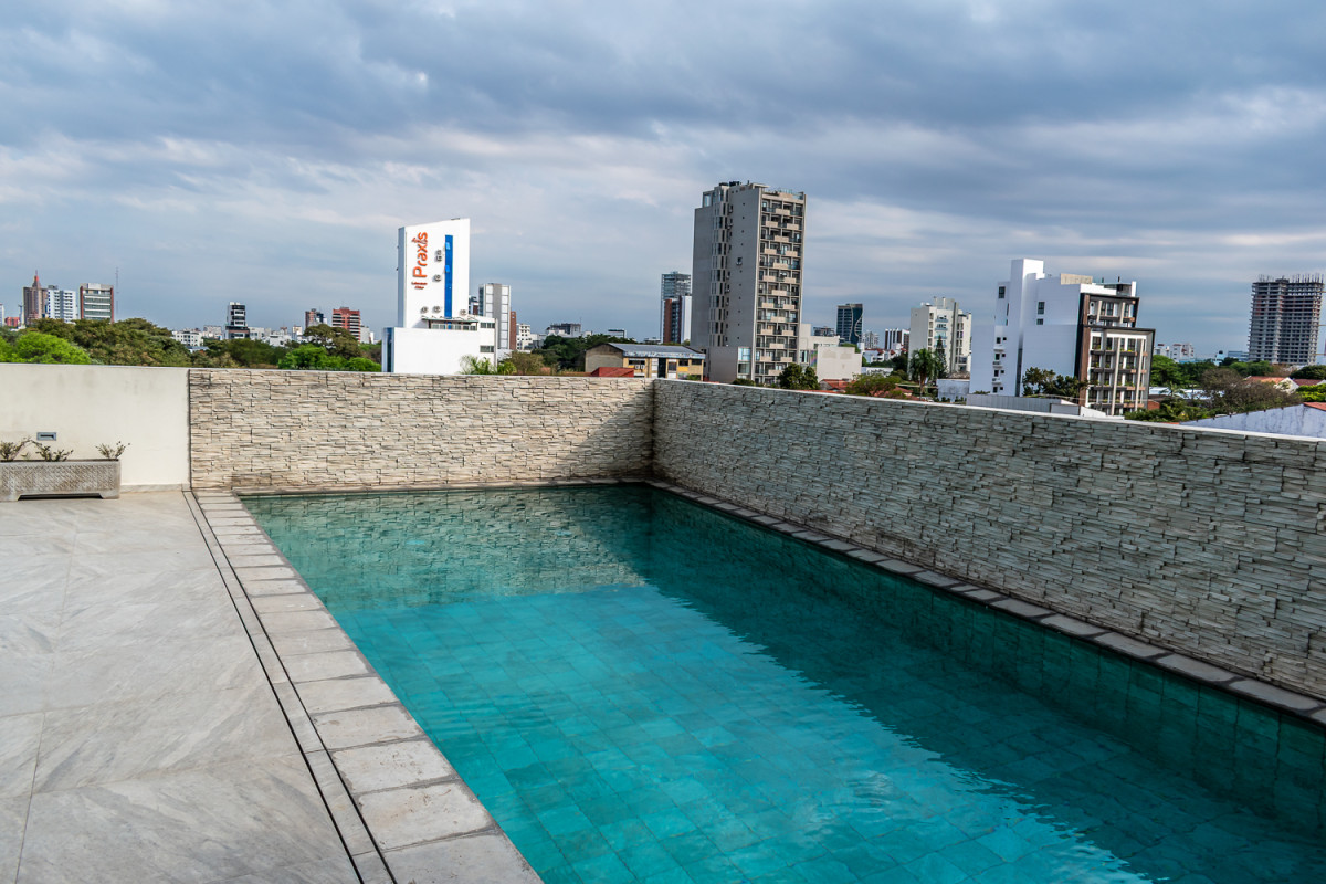 - Piscina, sala de TV, parrillero y mesa de billar en el 4to piso - Gimnasio, salón de eventos techado con parrillero y balcón panorámico 360° en el piso 17 - Sala de lavado con lavadoras y secadoras - Seguridad privada 24/7, cámaras de vigilancia, parqueo exterior para visitas y dos ascensores