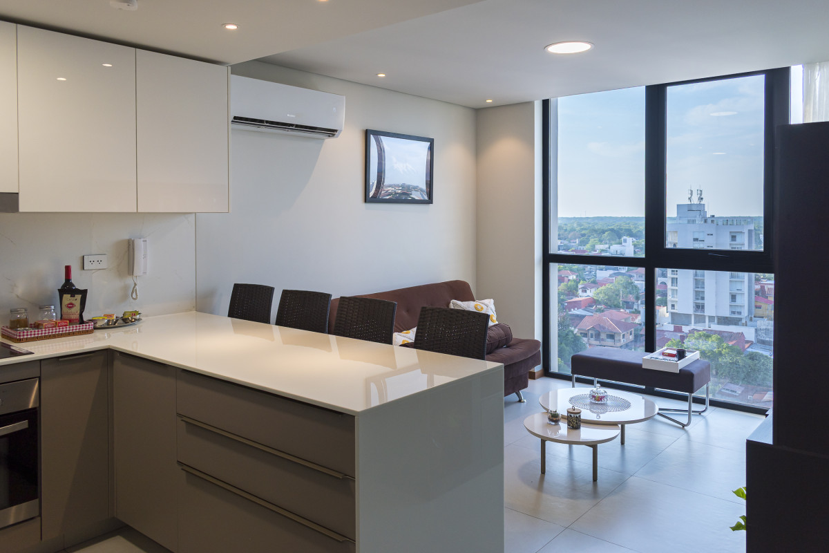Relájate en este espacio tan tranquilo y elegante. Moderno depto. en Vertical 60, Equipetrol. 1 dormitorio con cama de 2 plazas, Sofa cama, Wi-Fi rápido, cerradura inteligente, A/C en living y dormitorio, cocina equipada, 2 TVs, calefón eléctrico. Edificio con piscina, gimnasio, salón de eventos, vista 360°, seguridad 24/7. Cerca de cafés, malls y servicios. Ideal para ejecutivos y turistas que buscan confort, estilo y ubicación premium en Santa Cruz. El espacio 🏙️ Departamento Premium en Vertical 60 – Equipetrol, Santa Cruz de la Sierra Vive la experiencia de Santa Cruz desde uno de sus puntos más exclusivos: el edificio Vertical 60, ubicado en la Av. La Salle esquina Luciano Justiniano, en pleno corazón de Equipetrol. Ideal para ejecutivos y turistas internacionales que buscan confort, seguridad y una ubicación estratégica. 🛏️ **Tu espacio privado** - Departamento de 1 dormitorio con aire acondicionado - Baño moderno y alacena con lavandería - Cerradura inteligente para tu tranquilidad - Wi-Fi de alta velocidad 🍳 **Cocina y equipamiento completo** Incluye cocina encimera, horno, microondas, refrigerador con dispensador de agua fría, **calefón eléctrico**, caldera eléctrica, cafetera, sanduichera, vajilla completa, ollas y sartenes. 📺 **Entretenimiento y confort** - **Dos televisores**: uno en el dormitorio y otro en el living - **Servicio de TV cable y plataformas de streaming** disponibles 🏢 **Amenidades del edificio** - Piscina, sala de TV, parrillero y mesa de billar en el 4to piso - Gimnasio, salón de eventos techado con parrillero y balcón panorámico 360° en el piso 17 - Sala de lavado con lavadoras y secadoras - Seguridad privada 24/7, cámaras de vigilancia, parqueo exterior para visitas y dos ascensores 📍 **Ubicación privilegiada** A pasos de cafés, restaurantes, bancos y supermercados. Cercano al Mall Ventura, Mall Las Brisas, Green Tower y M40. Zona tranquila. Acceso de los huéspedes Los huéspedes pueden hacer uso de todos los espacios que ofrece el edificio, gimnasio, piscina, parrillero, mesa de billar, etc.