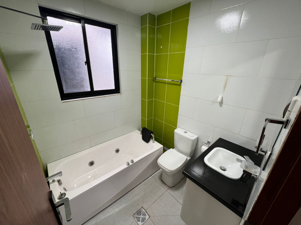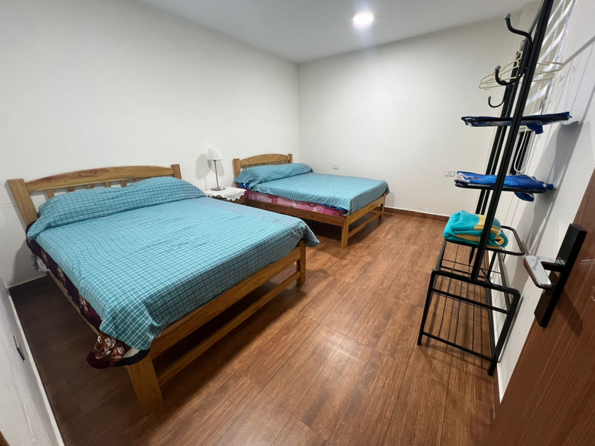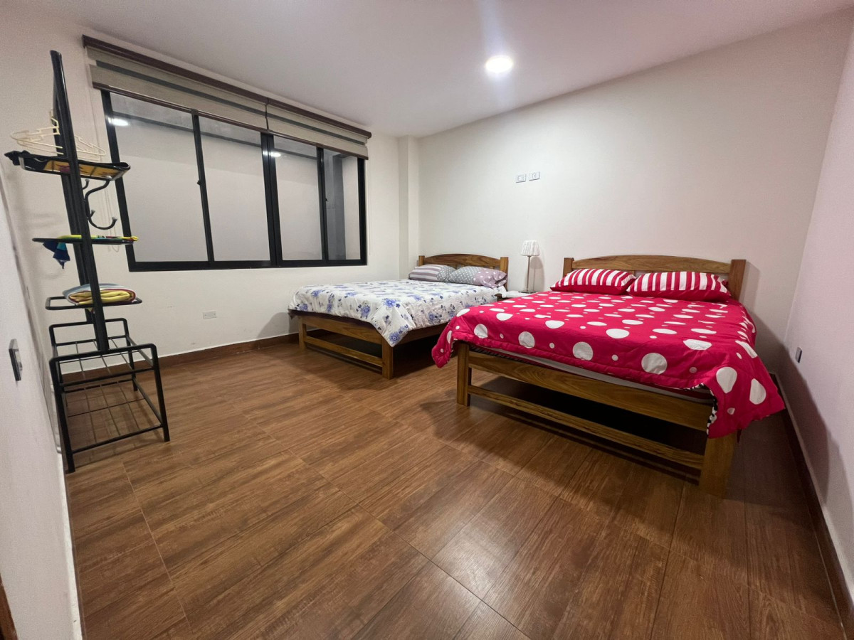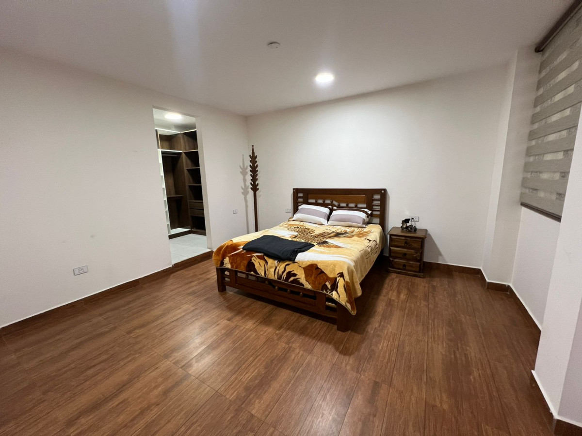 Departamento que consta de 3 habitaciones ,2 baños, 1 sala, 1 comedor y 1 cocina con enceres básicos,tambien tiene cámaras de seguridad en todos los exteriores,ducha a calefon 1 tina con hidromasajes,area de ejercicio,1 lavanderia.
