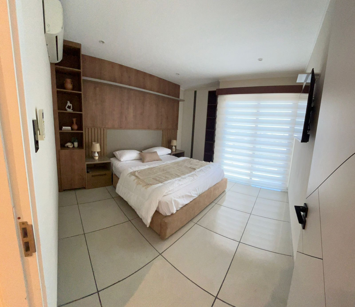 Moderno Departamento en el 6° piso con balcón, ideal para 2 adultos y 2 niños o hasta 3 adultos. El dormitorio ofrece cama de 2.5 plazas + TV y balcón; la sala cuenta con sofá cama y TV ambas con Google TV. Cocina equipada con heladera, microondas, estufa y utensilios. Baño con ducha caliente y box. El edificio ofrece piscina y terraza. Todo los ambientes del departamento cuentan con Aire Acondicionado y Wifi. Ubicado en zona norte, cerca de supermercados, restaurantes, gasolineras, cajeros, a 10 min de Mall Las Brisas, 12 min de Ventura Mall y 20 min del aeropuerto.✨