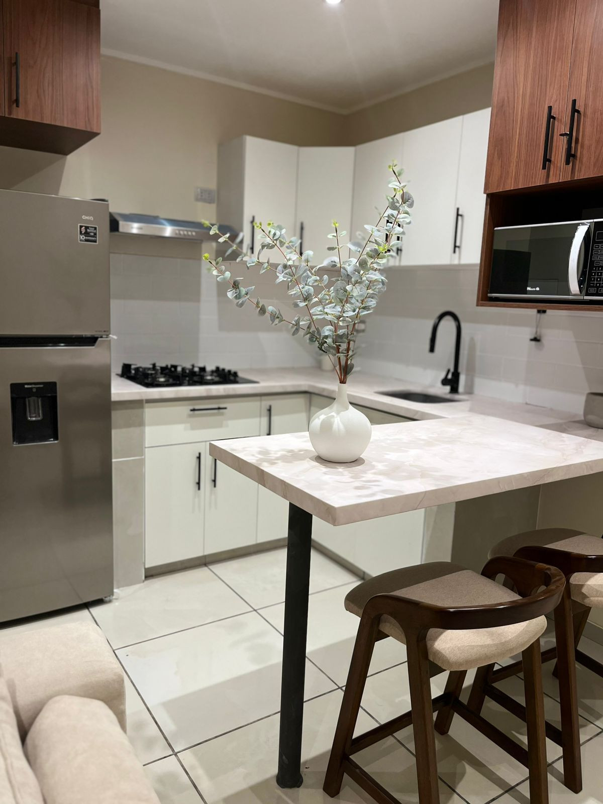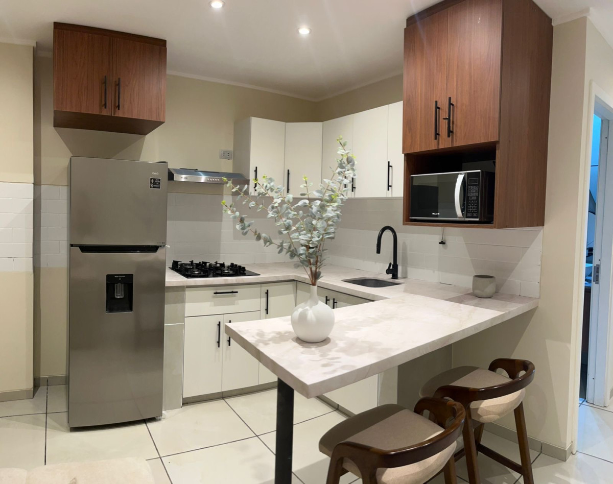 Tendrán acceso exclusivo a todas las áreas del departamento , incluyendo la cocina completamente equipada con heladera, microondas, estufa y utensilios de cocina; una sala con un sofá cama de 1.5 plazas y TV con Google TV; y una habitación con cama de 2.5 plazas, TV con Google TV para disfrutar de cualquier aplicación de streaming, y balcón. También contarán con un baño completo con agua caliente y acceso a las áreas comunes del edificio, que incluyen piscina, terraza, zonas de descanso y seguridad las 24 horas. Wifi y Aire Acondicionado en todos los ambientes de departamentos.